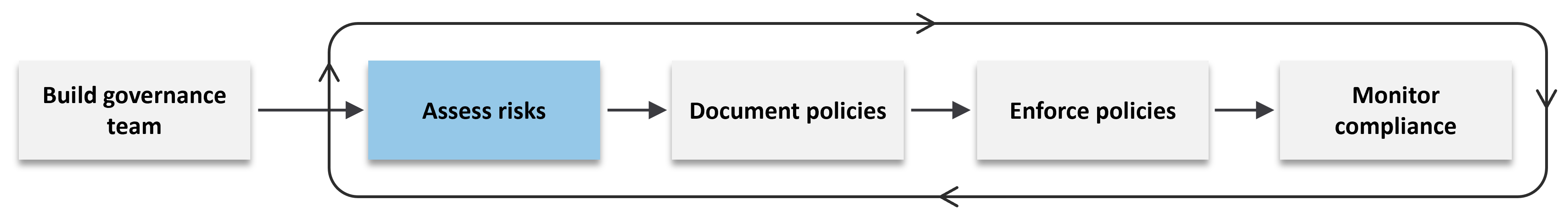 Once the governance team is in place, the next step is to identify and evaluate all significant risks associated with your organization's use of the cloud. A "risk" in this context is any potential unwanted outcome, such as a security breach, compliance violation, service outage, or cost overrun, that could result from how the cloud is used. By assessing risks, the governance team gains the information needed to craft relevant policies in the next step. This risk assessment should be conducted initially during governance setup, and then revisited regularly and whenever major changes occur, like new projects, new threats, audits, and incidents.