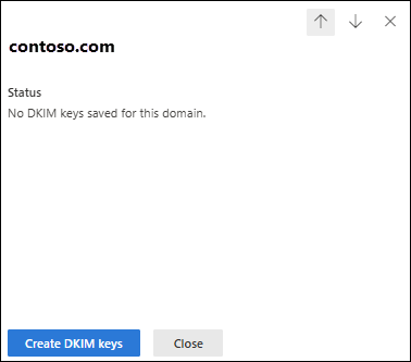 In the domain details flyout that opens, select Rotate DKIM keys at the bottom of the flyout.
