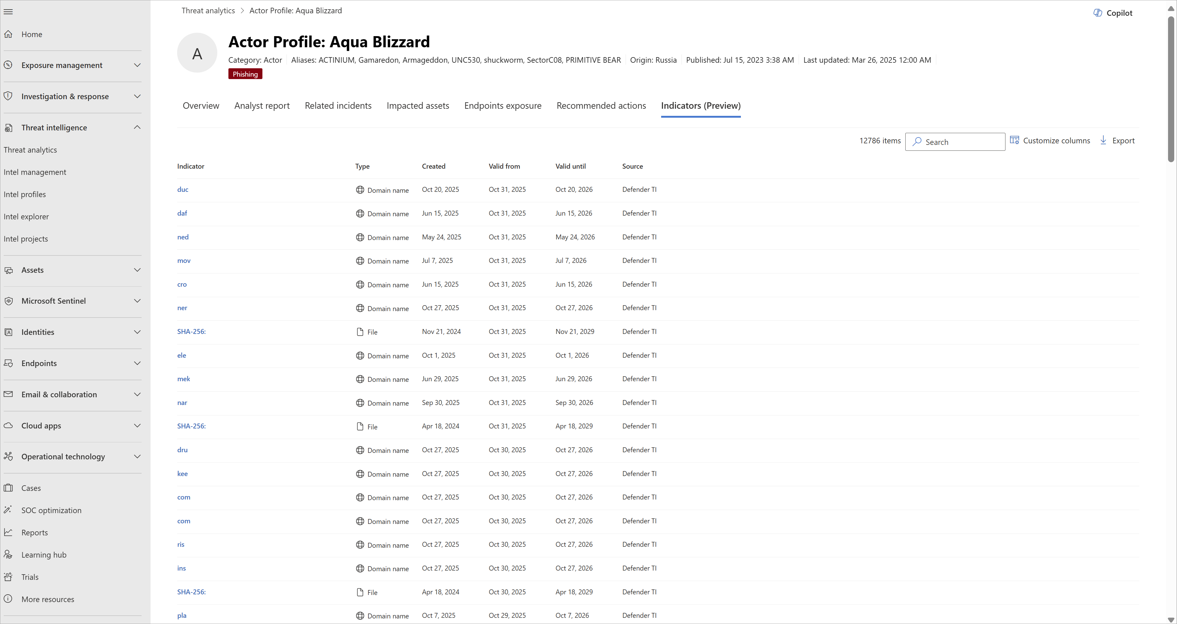 Indicators: View specific infrastructure and evidence behind the threat (preview)