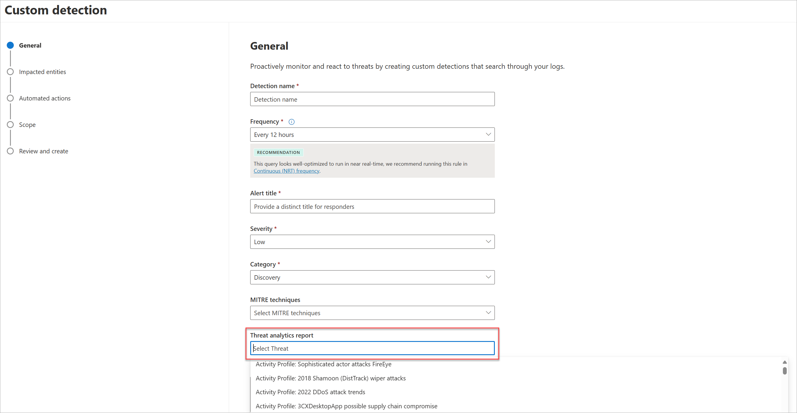 Set up custom detections and link them to Threat analytics reports