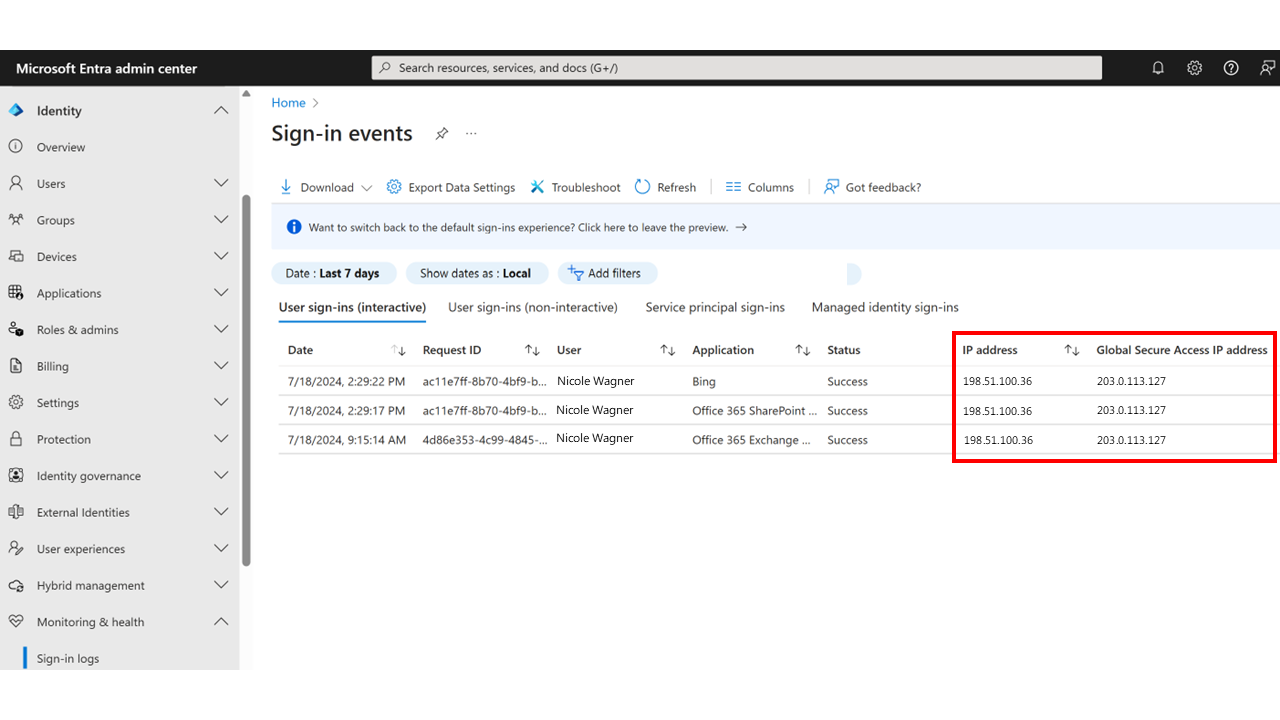 - It elevates your threat detection and response by recording accurate source IP in Microsoft Entra sign-in logs and in Microsoft Entra audit logs.